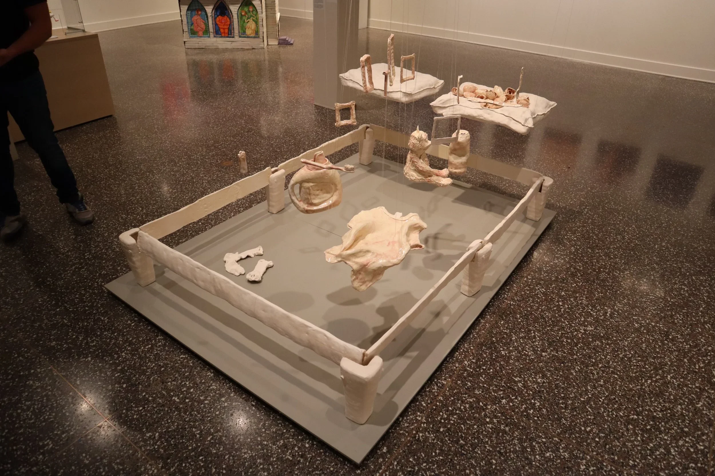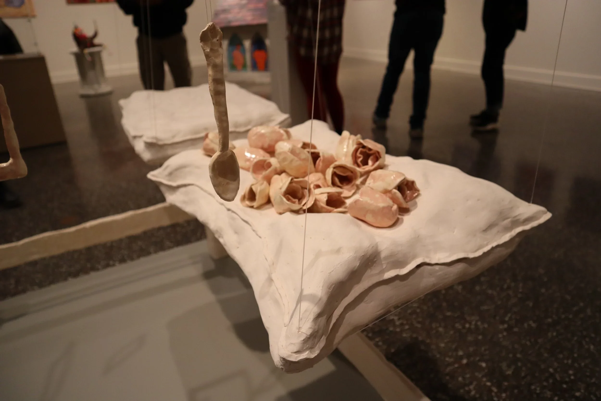 This work serves as a memorial to the physical spaces and belongings left in the wake of the inevitable losses we face during life. As children, we cling to physical objects for comfort to ease the anxieties of separation. As adults, these objects may change form but often remain present in our spaces long after the person has left. I am recreating these objects by hand, shown out of context and weathered by simulated age. This project questions how we deal with grief in ways that are deeply personal and unique. Memorializing objects left behind in this way can help us accept losses that are not only physical or literal, but also the intangible aspects of life we grieve, such as relationships, innocence, spaces, and our sense of self. We often lack the appropriate time to grieve completely, and transitional objects can help us hold space for this process, even if for a short moment in our day or lives.